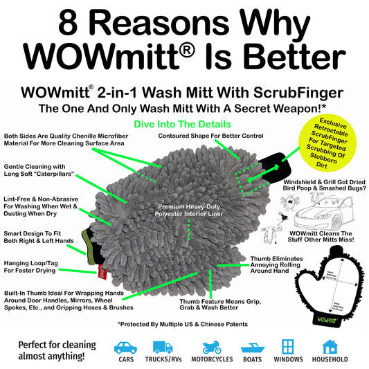 WOWmitt® Wash Mitt - The First & Only Multi-Patented Wash Mitt With A Secret Weapon - The Scrubfinger! ONLY $7.98 Each For 2+ Or $9.97 for One!