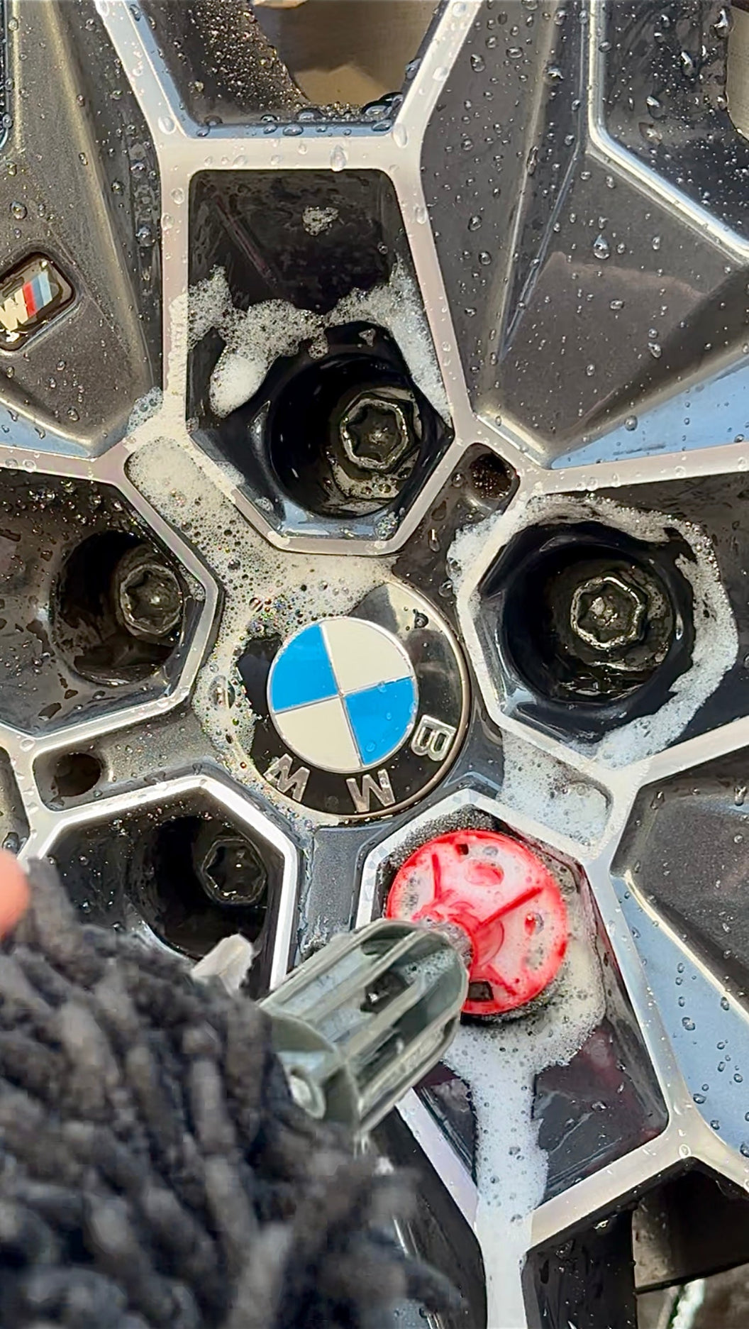 Do you have complex design Wheels? Wheel designs have become quite complex. These look great … when clean. However, keeping them clean can take forever. The Woollywormit works on wheels only that have openings larger than the brush dimensions – so refer to the specifications for brush dimensions. However, if the wheels are stained or haven’t been cleaned in awhile, the corners and tight spaces may need a wheel cleaner to help get back down to the wheels factory coatings. The Woollywormit, nor likely any brush you’d want to use on your wheels, will remove stains and old brake dust on their own – stronger chemicals are usually needed. But, the good news is that once you get clean down to the wheel’s coatings, timely routine cleaning doesn’t require harsh chemicals any longer – just soap and water.