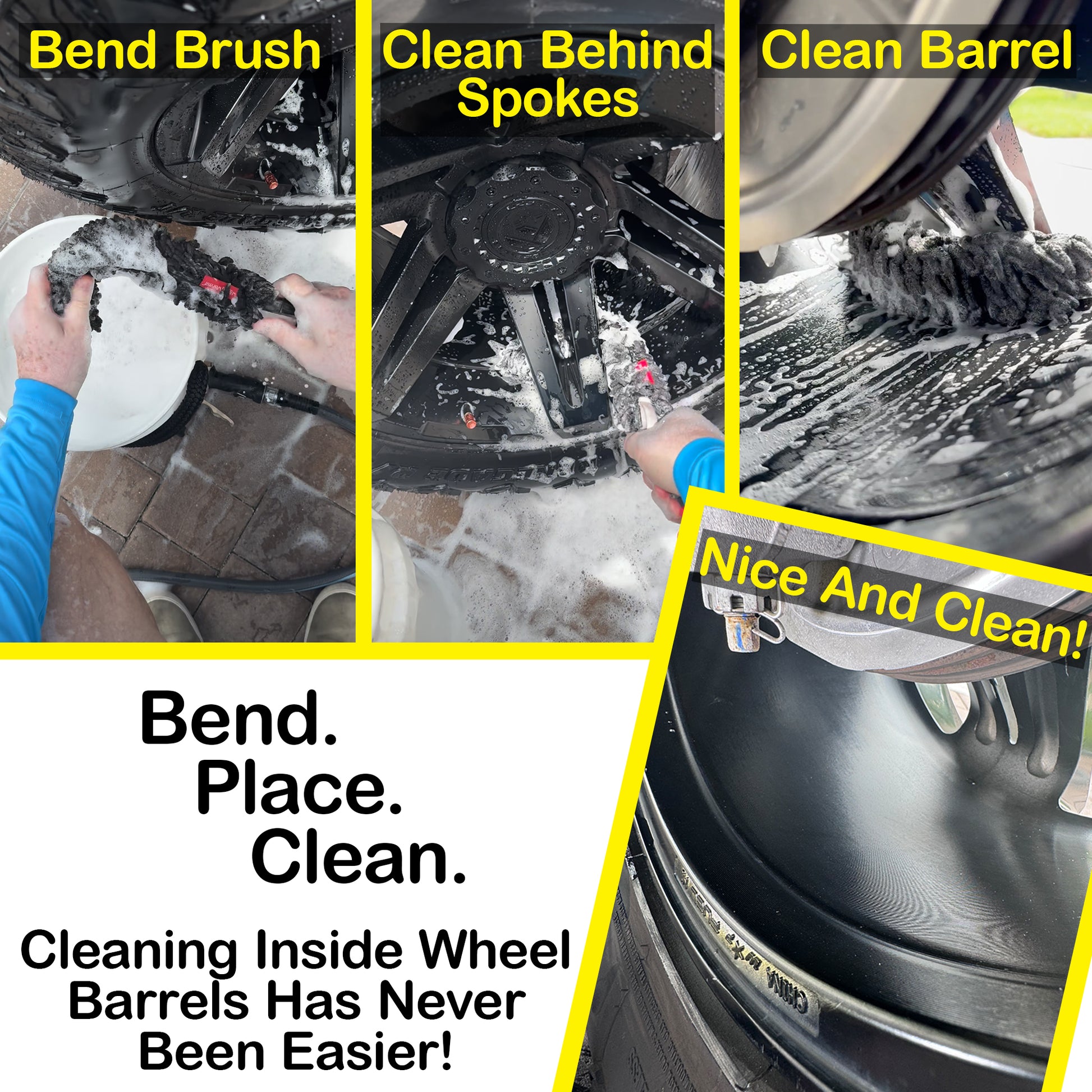 Never thought about this before? Well, most people don’t. We've all heard as a kid, "Clean behind your ears"? Well, it's the same thing - sort of. That is, even if the area isn't visible, it's important to keep it clean - because the dirt that collects behind the spokes, and there's a lot of it, eventually ends up down on the inner barrel where it is seen. Additionally, when you clean behind the spokes and move the brush to where the base of the spoke and barrel meet, you'll be cleaning that area of the barrel that's harder to reach when simply wiping the inner barrel with a back and forth motion. So, if you are like us and really obsessed with having clean wheels, and have a burning desire to clean the backside of each spoke once in awhile, now you can do it! One of the brush's coolest features is the unique bendable backbone structure. Simply bend the brush as needed and reach back behind the spokes to clean. No one else may notice your wheels are clean behind the spokes, but you will know it! (NOTE: Please see Specifications or Features and Benefits for brush dimensions and minimum opening sizes required for brush to fit.)