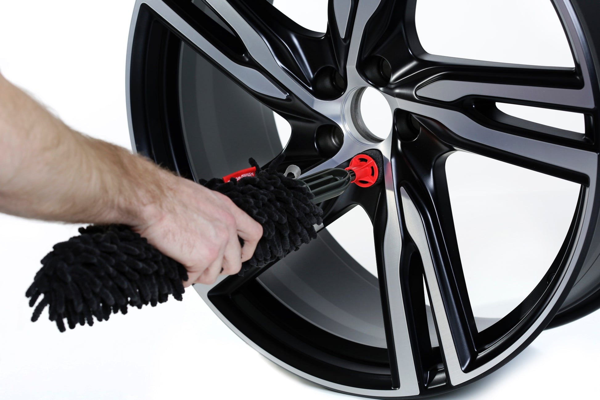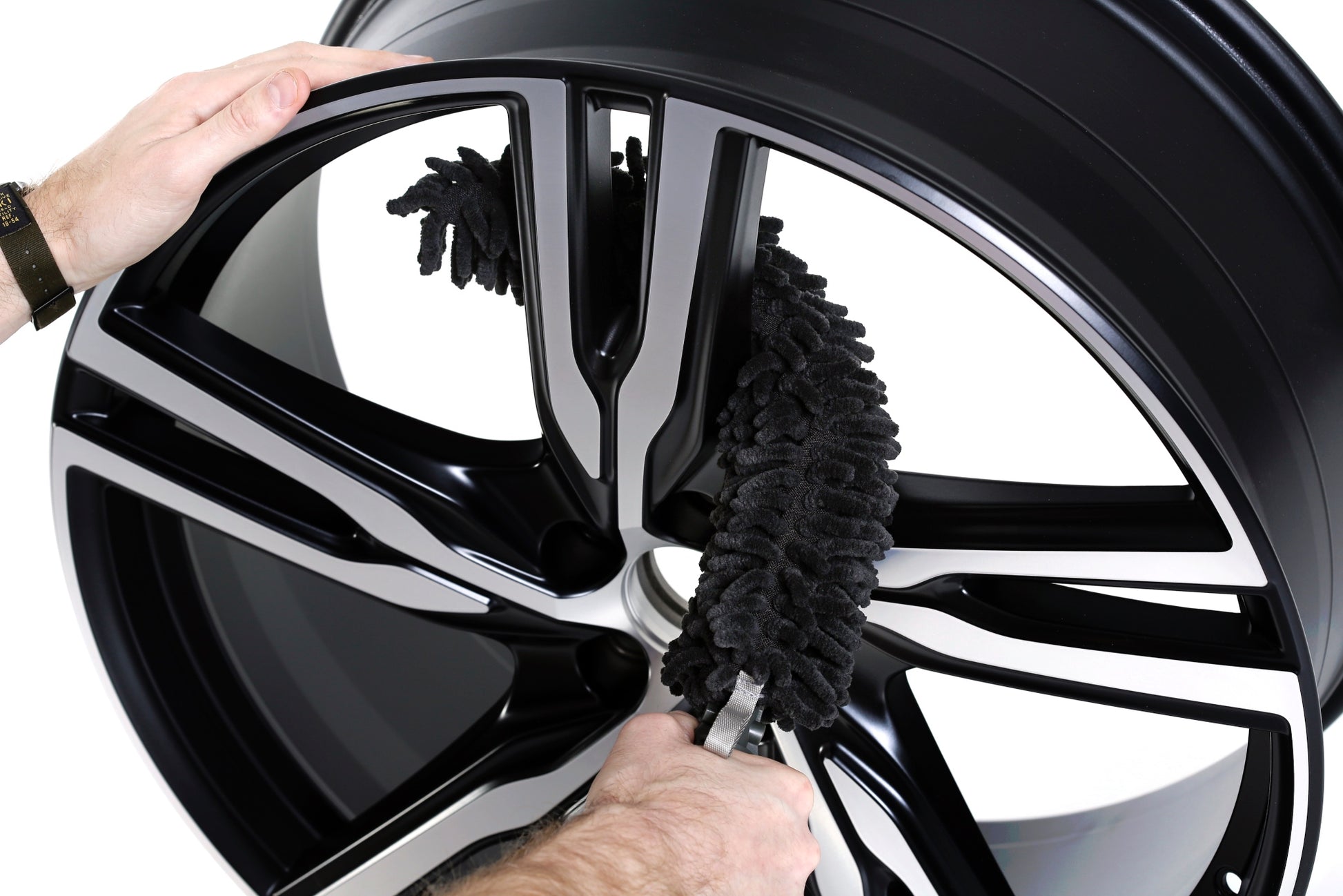 Why have nice and sporty open and deep wheels if you are not going to keep them looking great? The extra-long Chenille microfiber brush body reaches where many other brushes cannot. Clean the inner wheel by inserting the brush body deep inside the wheel between the spokes and move the brush back and forth against the inner wheel like a windshield wiper (assuming there is space to do so). Work your way around the wheel clockwise between each spoke, being sure to overlap those areas behind the spokes with the back and forth motion - so you get the complete inner circumference clean. The WoollyWormit makes good-looking wheels look great!